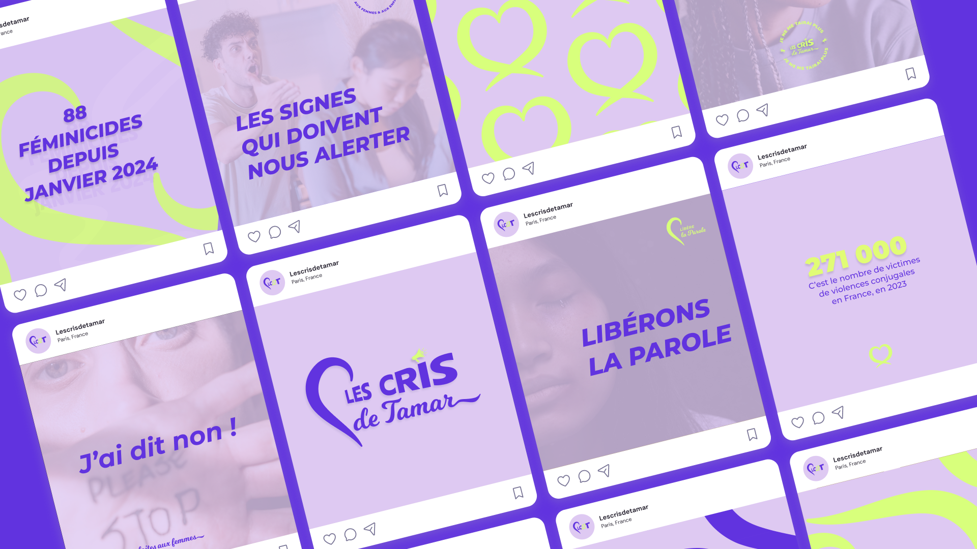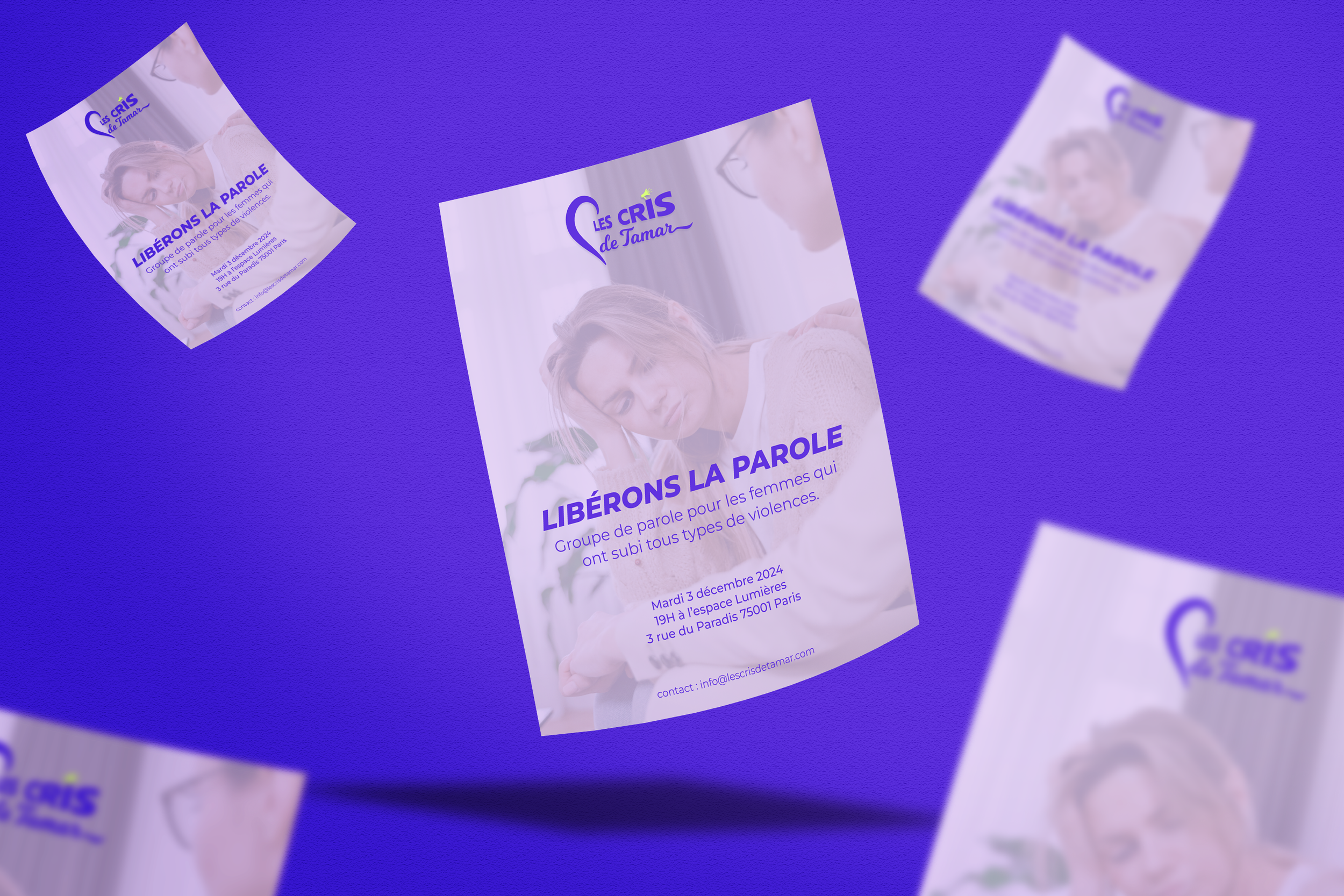 Réalisation de l’identité visuelle de l’association Les cris de Tamar, qui lutte contre tous types de violences faites aux femmes et aux enfants.